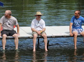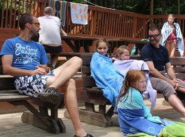 The men bunk together in an all-dads cabin, while the girls have female chaperones in their cabins. Please consider if your youngest daughters might have separation anxiety before you commit. (cabin assignments are grouped by common age of the girls and sibling considerations).